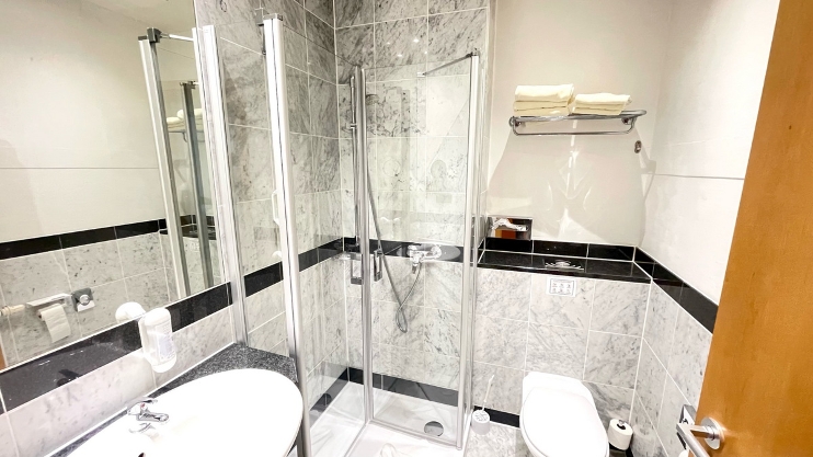 separates Badezimmer mit Dusche/WC, Haartrockner, Kosmetikspiegel