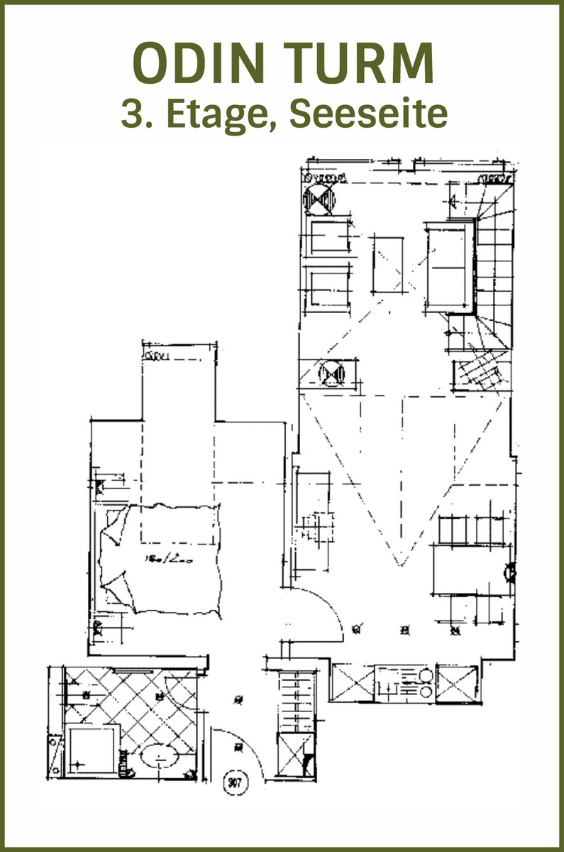Dieses 2-Zimmer Apartment verfügt zusätzlich über eine Sitzecke im Turm, welche über eine Wendeltreppe erreichbar ist. Der Meerblick ist von dieser Stelle aus garantiert.