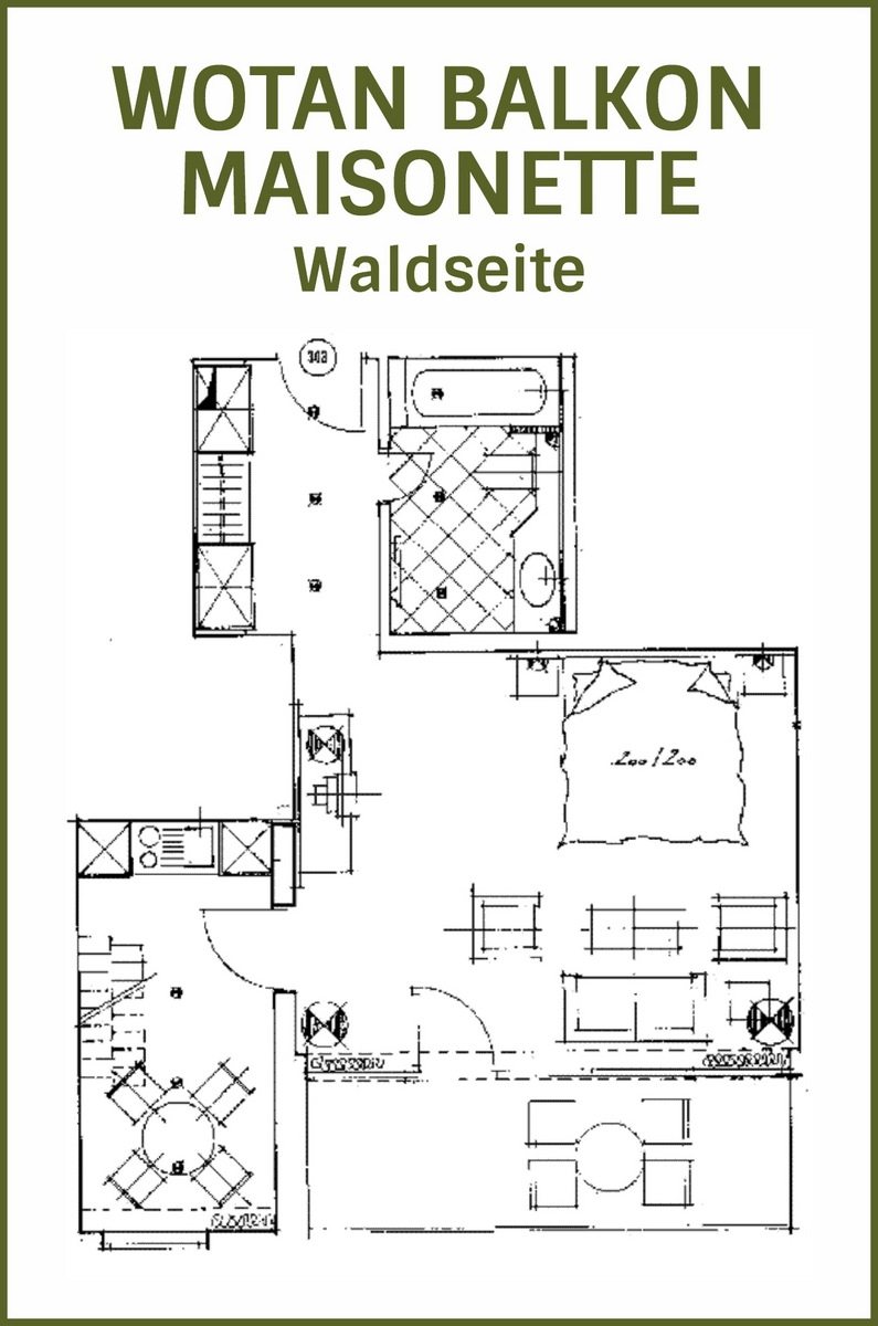Dieses 2-Zimmer Apartment hat einen großen Balkon mit Aussicht zur Waldseite.