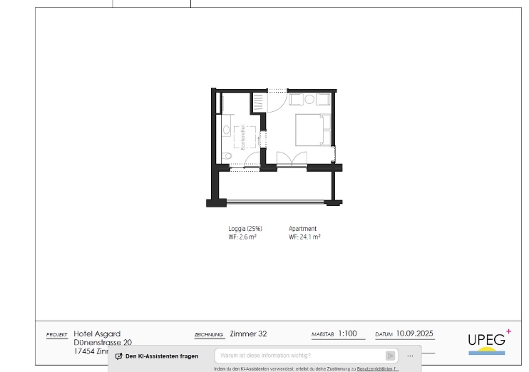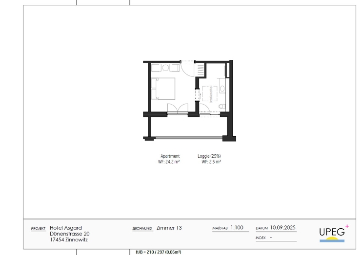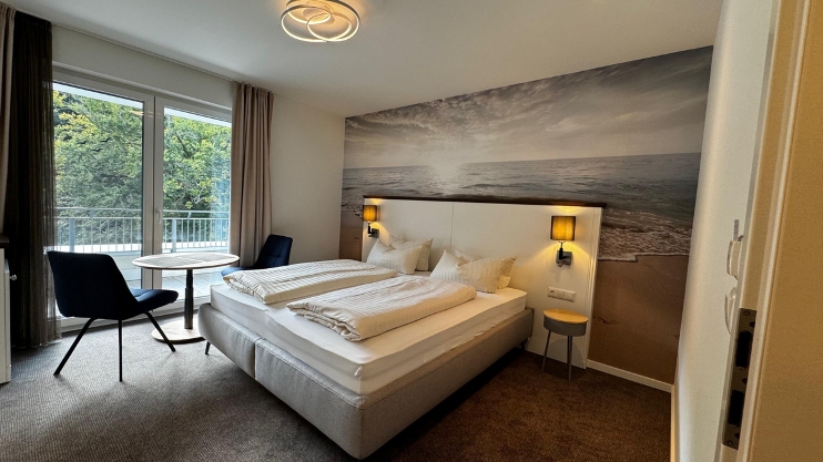 Ausstattung: Flat-TV, Telefon, Zimmersafe, kostenfreies WLAN, Kühlschrank ohne Eisfach, Wasserkocher, Boxspringdoppelbett mit Leselampen, großes Bad mit Dusche/WC, Waschtisch, Handtuchheizung, Kosmetikspiegel, Föhn, große Loggia mit Sitzgelegenheit