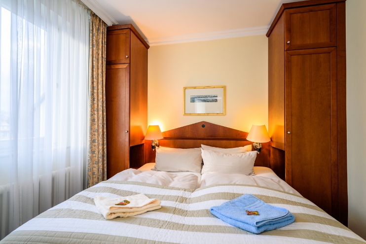 Dieses 2-Raum-Apartment hat einen optisch getrennten Wohn- und Schlafbereich und ein separates Schlafzimmer. Es befindet sich zur Landseite mit Südbalkon.