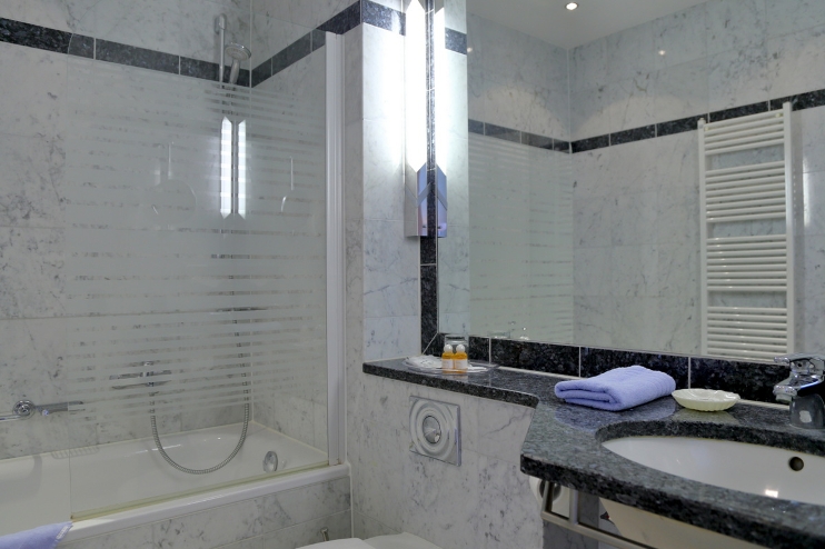 separates Badezimmer mit Wanne/WC, Haartrockner, Kosmetikspiegel