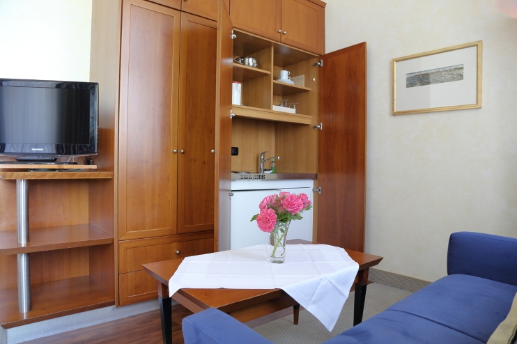 Sitzecke, Doppelbett, Flachbild-TV mit Radio, Telefon, Safe